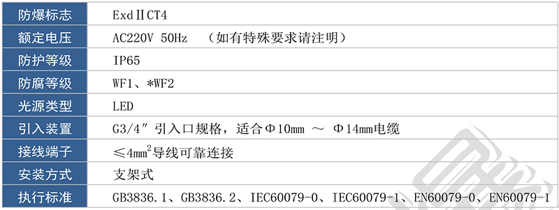 > 適用于ⅡA、ⅡB、ⅡC 類爆炸性氣體環(huán)境。