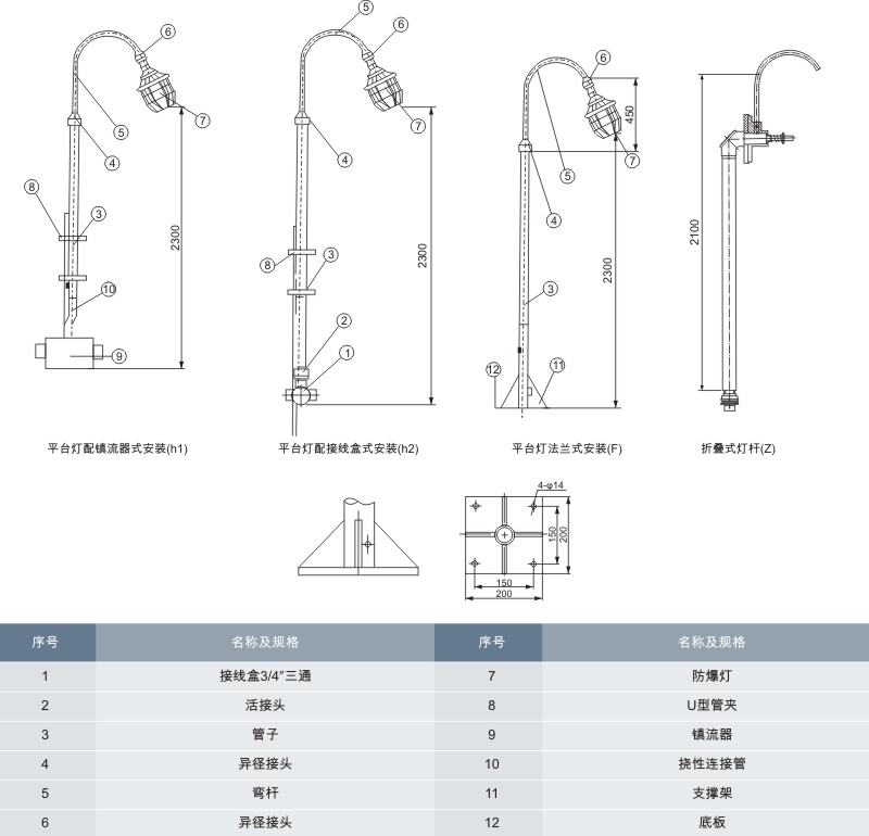 * 01、05、06型可根據(jù)用戶要求配裝燈傘。